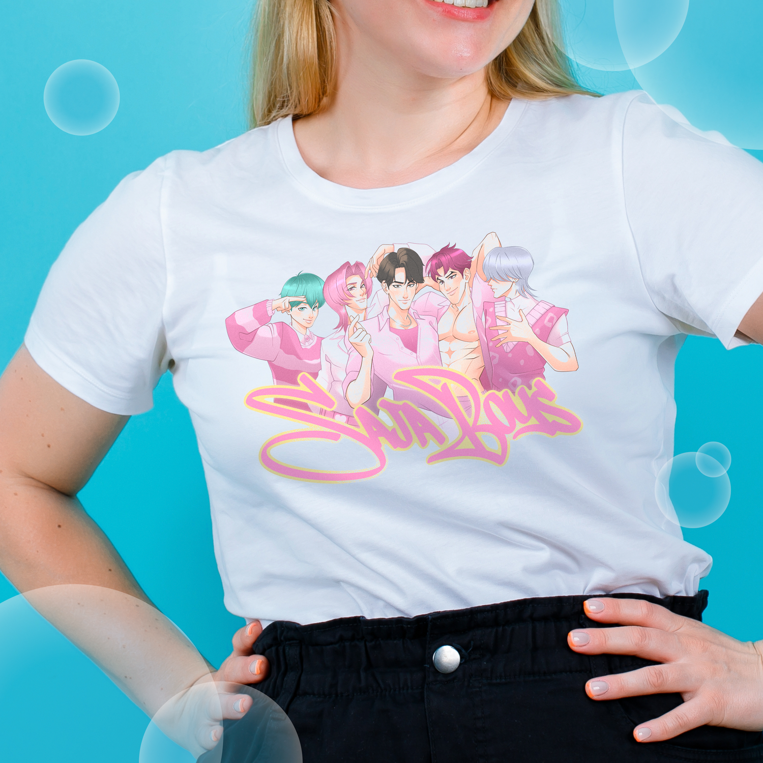 Join the pride and support your #1 idol with the Saja Boys White Graphic T-Shirt!.